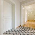 W apartamencie odrestaurowana została stolarka wewnętrzna oraz parkiet. Wysokie pomieszczenia oraz duża ilość okien zapewniają doskonałe doświetlenie oraz przestronność.