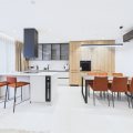 vir_listalng_stala_zabudowa, vir_listalng_okap, vir_listalng_lodowkozamrazarka, table, stove, stand-alone cabinets, refrigerator, oven, Microwave, kitchen furniture to size, kitchen furniture, kitchen cabinet, induction hob, electric stove, dish-washer, dishes, chairs, ceramic plate, Appliances, wall-mounted cabinets