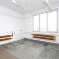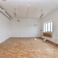 Parter składa się z: komunikacji z klatką schodową, pomieszczenia z bramą wjazdową, 3 przechodnich pomieszczeń, ciemnego pokoju oraz zaplecza socjalnego składającego się z: komunikacji, kuchni, jadalni, dwóch wc, prysznica, magazynku porządkowego.