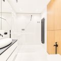 − nowoczesna łazienka z prysznicem typu walk-in,