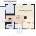 - parter: wiatrołap, przestronny salon połączony z otwartą kuchnią oraz jadalnią z wyjściem na narożny taras, łazienka, garaż (jednostanowiskowy z bramą na pilota, dodatkowe 2 miejsca postojowe na podjeździe przed domem) oraz kotłownia,