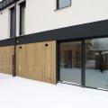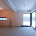 · Salon z aneksem kuchennym (28,55 m²) oraz bezpośrednim wyjściem na ogródek przez narożną ścianę przesuwną.