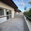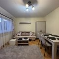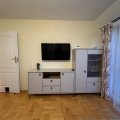 Przestronny pokój dzienny jest w pełni umeblowany – sofa, stół z krzesłami, meble oraz telewizor Smart TV. Z pokoju prowadzi bezpośrednie wyjście na taras.