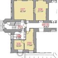 Lokal składa się z dwóch części przedzielonych główną komunikacją budynku. Lewa część to przejściowy pokój, oraz aneks kuchenny z jadalnią. Część po prawej stronie składa się z małego przedsionka oraz trzech pokoi (jeden przejściowy). Istnieje możliwość przywrócenia lokalu do stanu pierwotnego i utworzenia dużego, przejściowego pokoju wynikającego z połączenia przedsionka oraz dwóch pokoi. Na piętrze dostępne toalety.