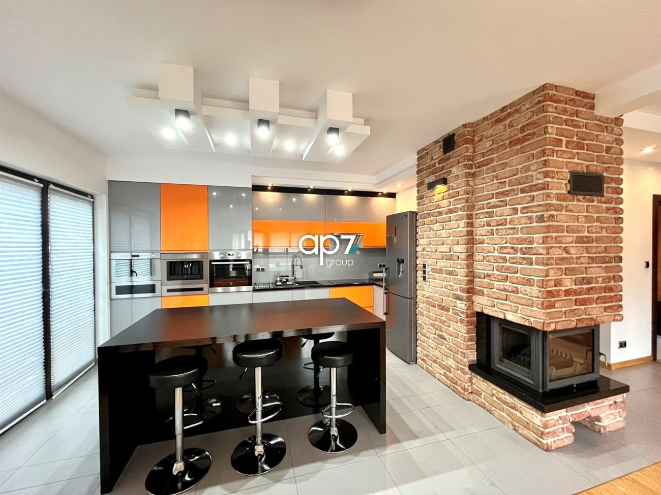 — nowoczesna kuchnia z wyspą (płyta indukcyjna, piekarnik, mikrofalówka, ekspres w zabudowie, zmywarka, lodówka),