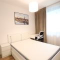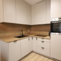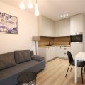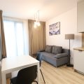 W salonie znajduje się sofa, stolik kawowy, szafka RTV, stół z krzesłami. Kuchnia umeblowana i wyposażona w sprzęty AGD: lodówkę z zamrażarką, płytę indukcyjną, piekarnik i zmywarkę. W sypialni znajduje się łóżko dwu osobowe, szafka nocna, pojemna szafa oraz miejsce do pracy (biuro i krzesło). Dodatkowo w przedpokoju duża szafa w zabudowie. W łazience znajduje się pralka.